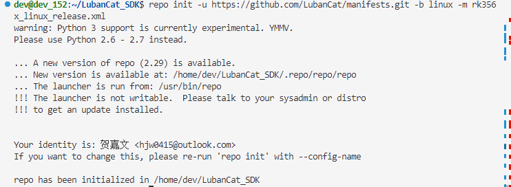 运行以下命令,将在当前用户的家目录下创建一个名为LubanCat_SDK的目录,用来放入SDK源码。