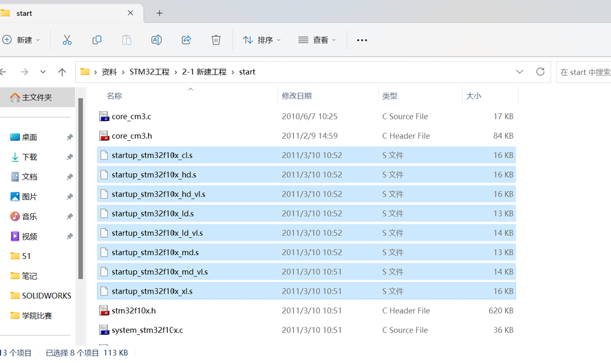 以下这些就是新建工程的启动文件: