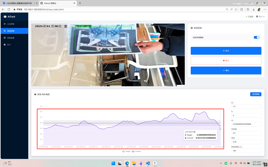- 双环 PID:实现了 PTZ(云台转动) 和 Zoom(变焦) 的双重 PID 闭环控制。